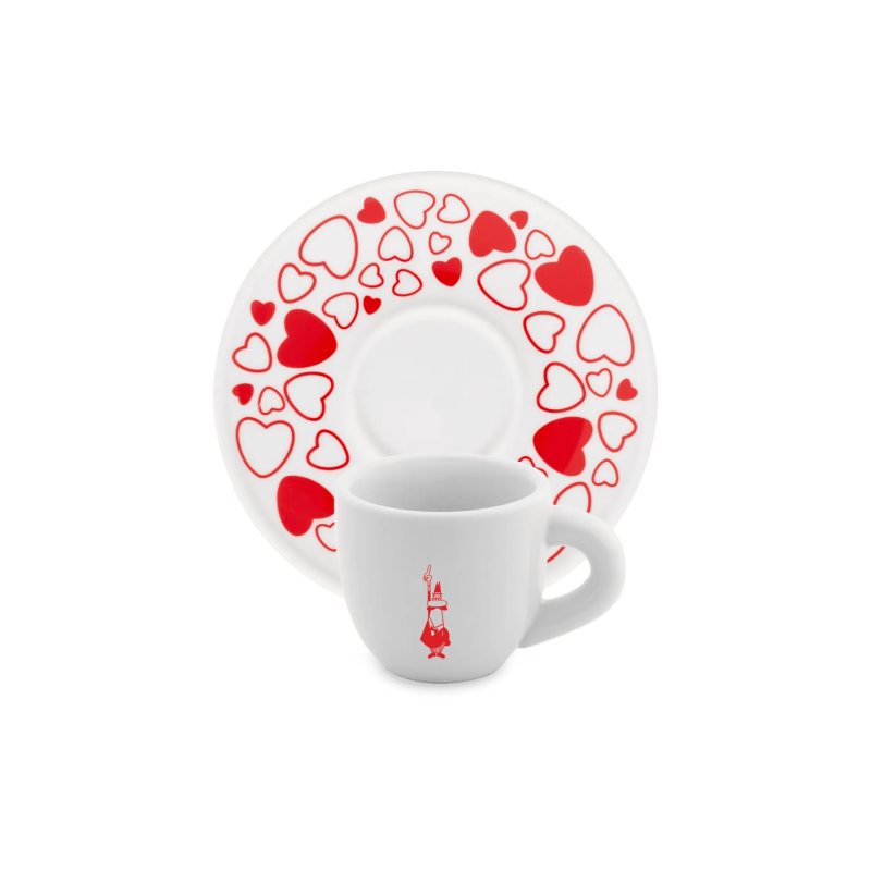 Bialetti White Red Hearts With plate Cup 80ml